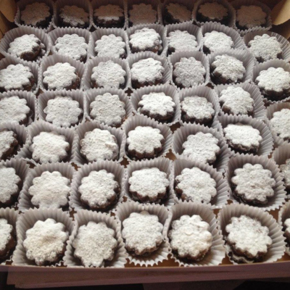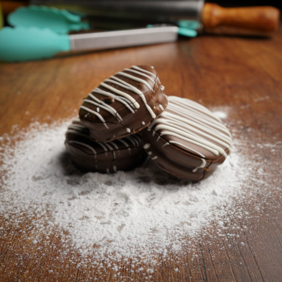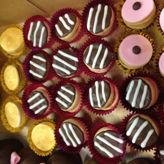 Tenemos diferentes opciones a elegir: los tradicionales alfajorcitos de maicena rellenos con manjar blanco, alfajores de chocolate rellenos con fudge y en caso de eventos especiales se puede coordinar decoración personalizada